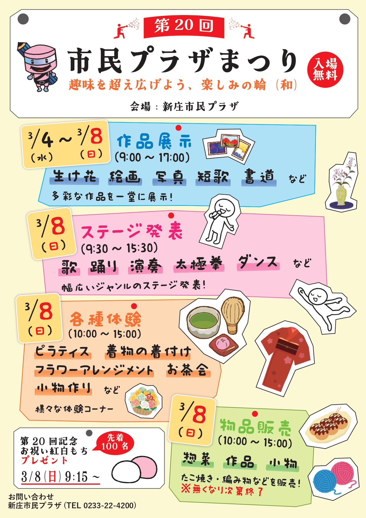 3/4(水)~3/8(日)の期間に第20回市民プラザまつりを開催します!