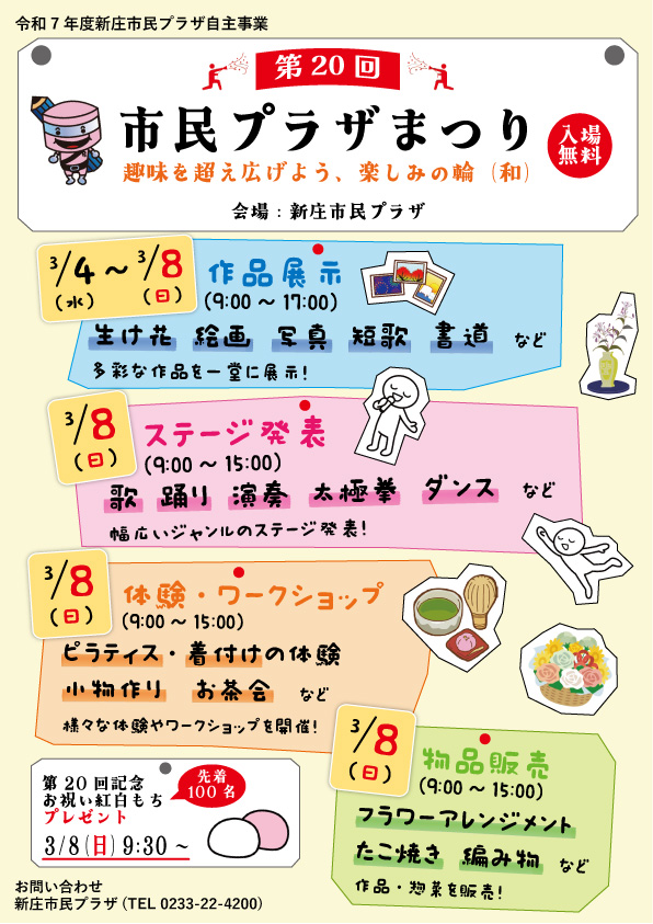 3/4(水)~3/8(日)の期間に第20回市民プラザまつりを開催します!